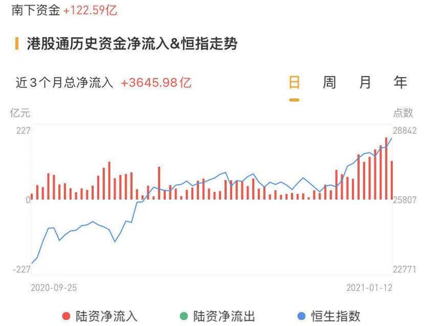 南下资金今日净流入港股122.59亿港元,流入规模较前一交易日基本持平,内资加仓港股情绪高涨!