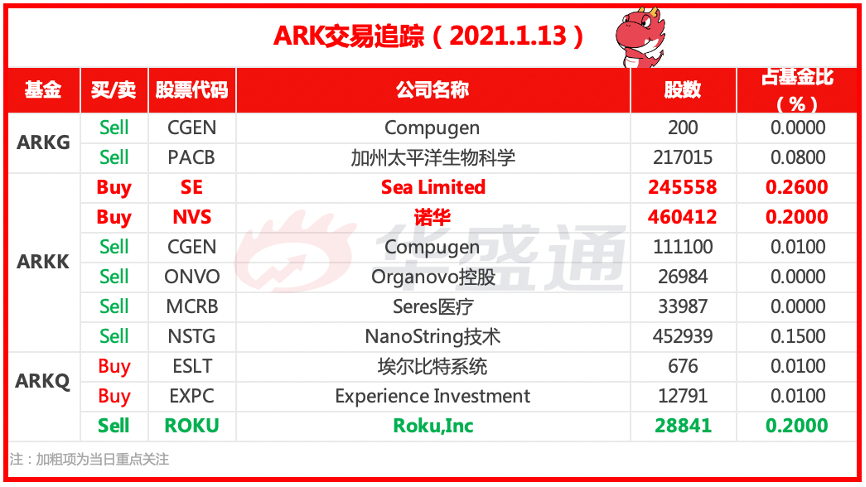 1. ARK昨日大力增持 Sea Limited,单日买入24.5万股,斥资约5500万美元