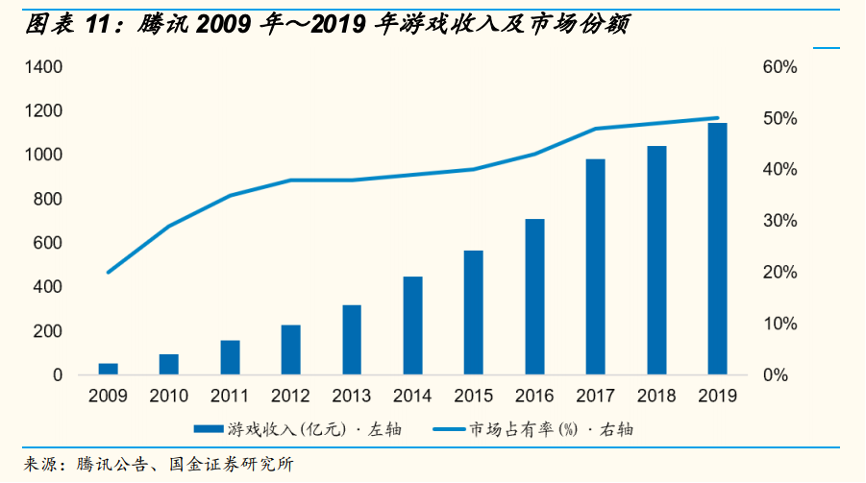 在游戏IP方面,腾讯旗下的《王者荣耀》、《和平精英》、《穿越火线》、《QQ飞车》、《QQ炫舞》是全民皆知的爆款手游。根据SensorTower数据统计,5款产品流水之和占腾讯iOS总流水基本维持在70%左右。公司的游戏收入及市场份额也在持续增长。