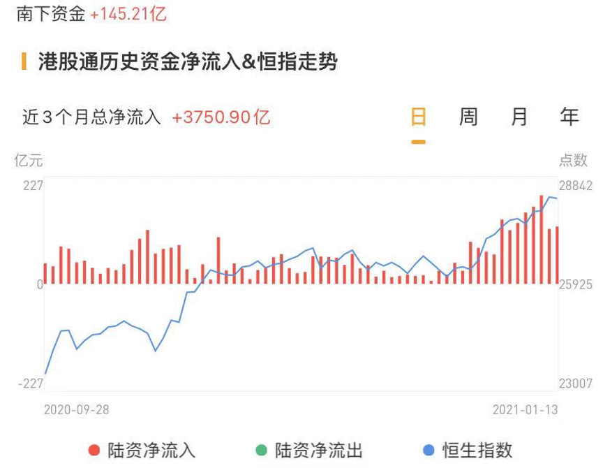 南下资金今日净流入港股145.21亿港元,流入规模较前一交易日有所扩大,内资加仓港股热情不减。