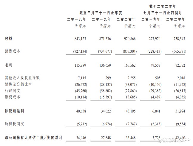 招股书显示,截至2018年、2019年及2020年3月31日止年度及2020年7月31日止四个月,环联连讯的收益分別约为8.43亿港元、8.71亿港元、9.71亿港元及7.59亿港元。毛利分别为1.16亿港元、1.37亿港元、1.66亿港元及9277.2万港元;净利分别为3494.6万港元、2764.8万港元、3344.8万港元及4244万港元。