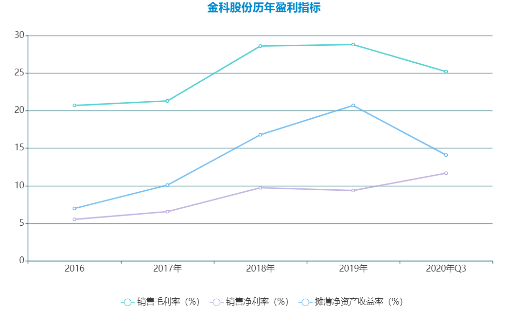 随着金科近年地价售价比有所下行,产品销售均价还未出现有效提升,盈利能力也出现有所下滑趋势。