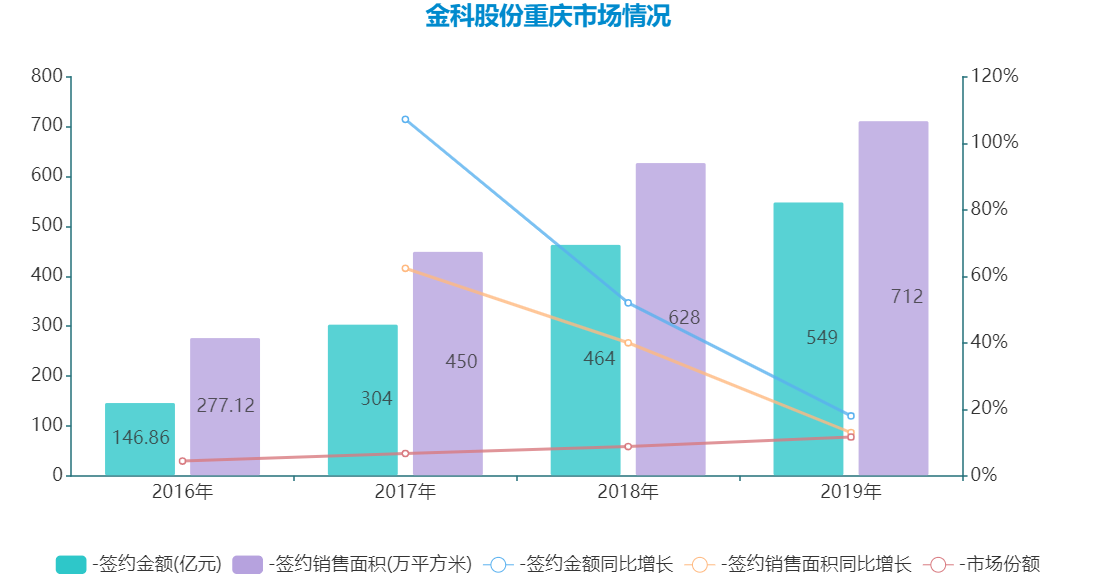 另一方面,金科重庆的签约销售面积、签约金额增长却呈现放缓趋势,这与上述土储调整策略不无关系。