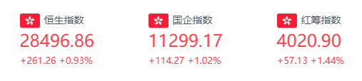 周四,恒生指数涨261.26点或0.93%,报28496.86点,全日成交额达2077.16亿。国企指数涨1.02%,报11299.17点,红筹指数涨1.44%,报4020.9点。