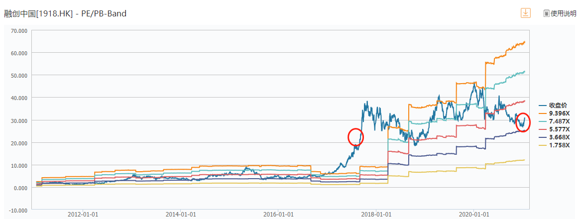 比如融创中国目前的滚动市盈率水平已经跌至其2017年股价大涨前的估值水平。