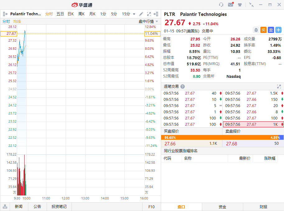 美股异动 | Palantir涨超10%,昨日获女股神增持