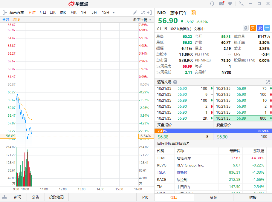 美股新能源汽车板块今日普遍回调,蔚来汽车(NIO.N)跌超7%,小鹏汽车(XPEV.N)跌6.5%,理想汽车(LI.O)跌5%,通用汽车(GM.N)跌3.9%,福特汽车(F.N)、丰田汽车(TM.N)跌近3%。