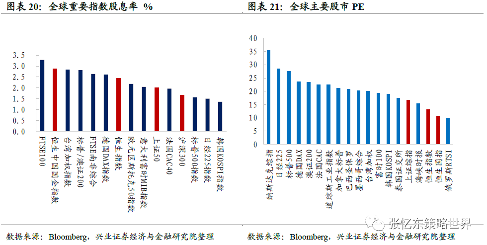 以股息率来看,恒生指数、恒生国指、沪深300指数股息率分别为2.4%、2.9%和1.67%,高于美日韩等国家主要指数股息率;