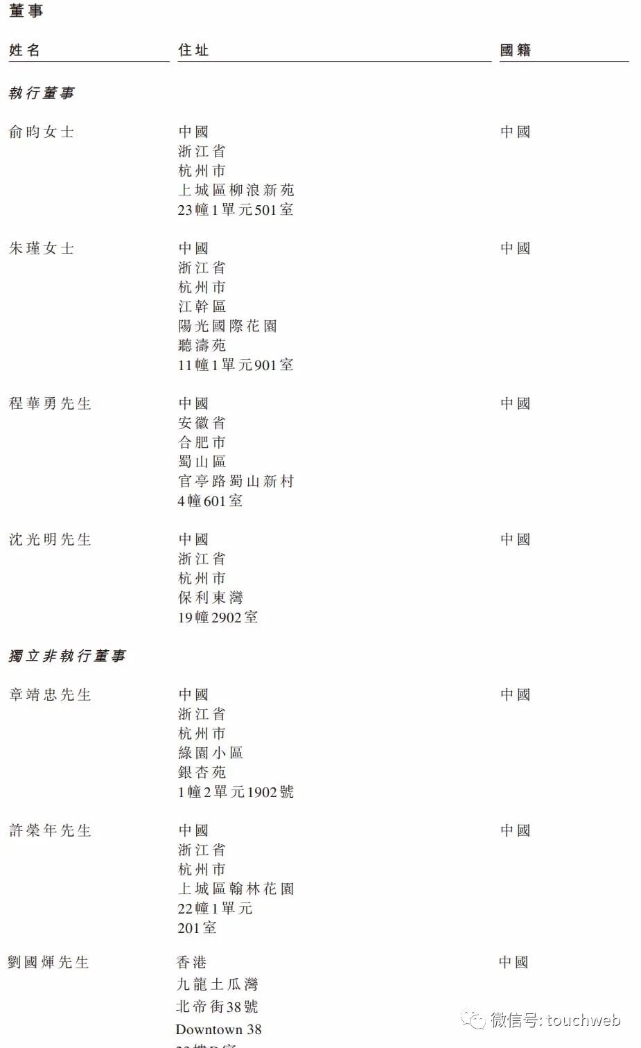 宋都服务执行董事为俞昀、朱瑾、程华勇、沈光明;独立非执行董事为章靖忠、许荣年、刘国辉。