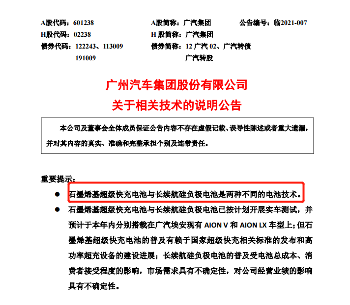 新能源汽车是一个热点话题,而周末关于广汽集团“8分钟充电80%”“续航1000KM”的讨论一直在进行。1月18日晚间,公司发布了《关于相关技术的说明公告》算是首次以正式公告的形式向市场作出说明。