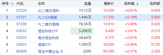 华盛资讯1月19日消息,恒指指数、恒生科技指数今日上演暴涨行情,相关ETF亦跟随大涨。截至发稿,XL二南方恒科涨超6%,FL二GX恒指、FL二南方恒指涨超5%,恒生科技ETF涨超3%,南方恒生科技、恒指ETF、恒生中国企业等涨超2%。