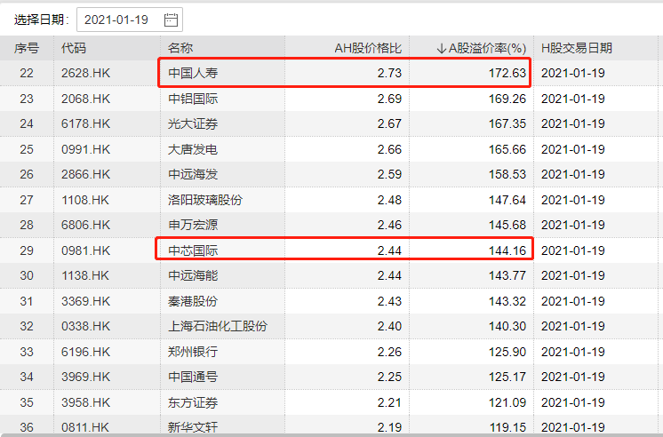 第二类是中字头公司,如电信三大运营商中国移动、中国联通、中国电信以及中国海洋石油。传统中字头公司值得投资者关注的有两点,首先是港股一直存在着相较于A股折价较大的情况,比如中国人寿、中芯国际、中国中冶等中字头A股的溢价率就超过110%以上,买入港股更加划算。