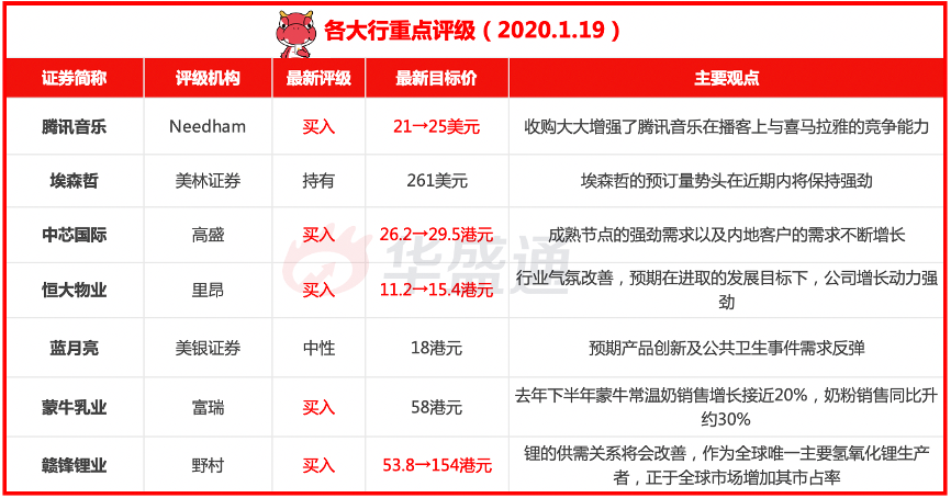 里昂发布研究报告,将恒大物业目标价由11.2港元上调37.5%至15.4港元,重申“买入”评级。该行预计,恒大物业今年并购面积预测由4000万平方米,将翻倍增至8000万平方米,预期在进取的发展目标下,公司增长动力强劲,加上行业气氛改善,重申其“买入”评级。里昂将恒大物业2020-22年净利润预测分别上调4.1%、2.8%及6.7%,反映去年盈利预喜因素及预计今年会进行更大并购。