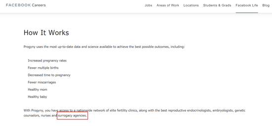 现实中,许多大公司都将代孕纳入了为员工提供的福利之一(不是公司帮你怀孕,是补贴你代孕的相关费用),比如在Facebook、Adobe、PayPal、哥伦比亚大学等公司和机构的官网上都明文显示自己提供这项福利。