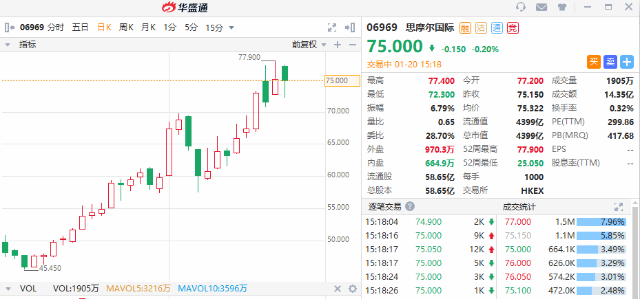 股价表现方面,思摩尔国际上市的半年多时间,股价较发行价12.4港元已累涨超6倍。