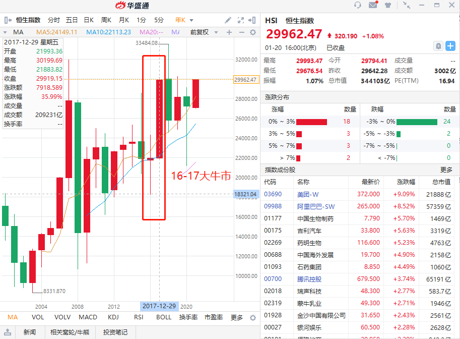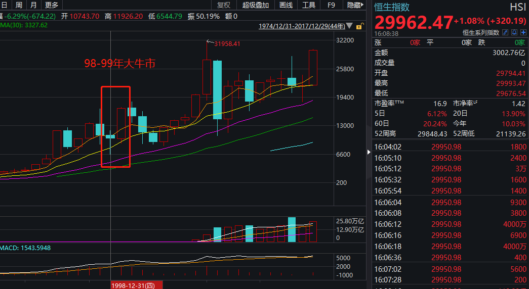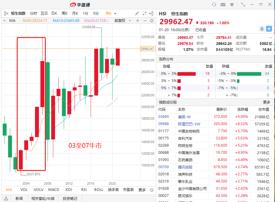 此轮牛市总结:估值回归和经济增长合力造就本轮牛市,在经济增长强劲的背景下,美联储小幅度的加息并未阻碍港股上涨。