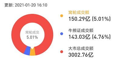 其中,窝轮总成交150.29亿港元,牛熊证总成交143.03亿港元。