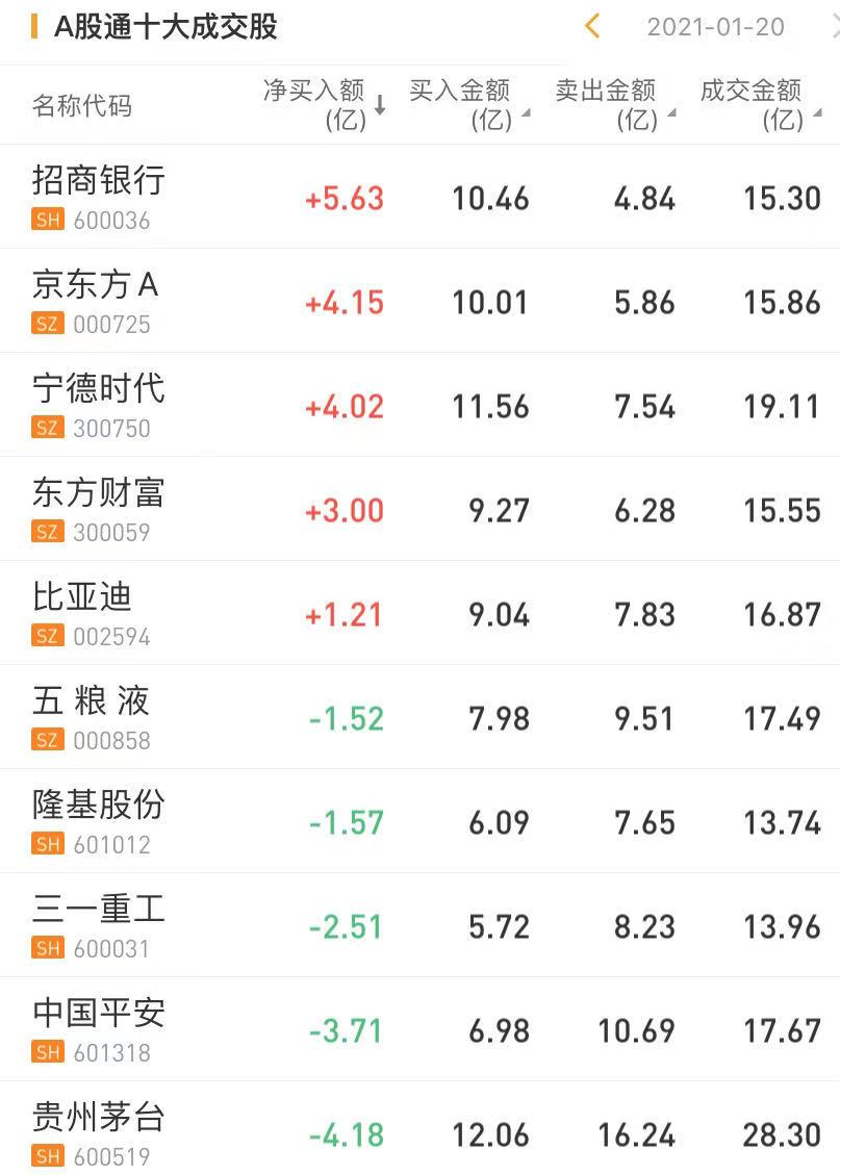 北上资金今日净买入招商银行5.63亿元,为今日买入之最。此外,北上资金今日净买入京东方A4.15亿元。