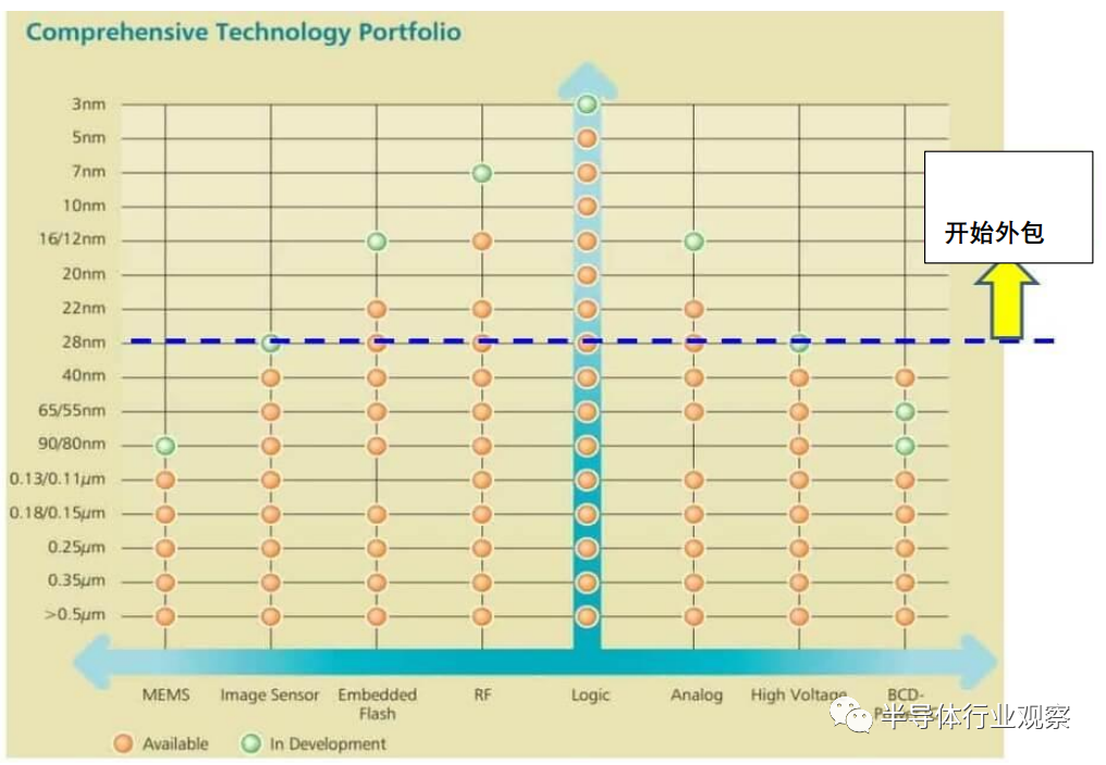 图1:TSMC的技术节点和瑞萨的外包生产。(图片出自:笔者从TSMC的2019 Business的图中汇总了此图。)