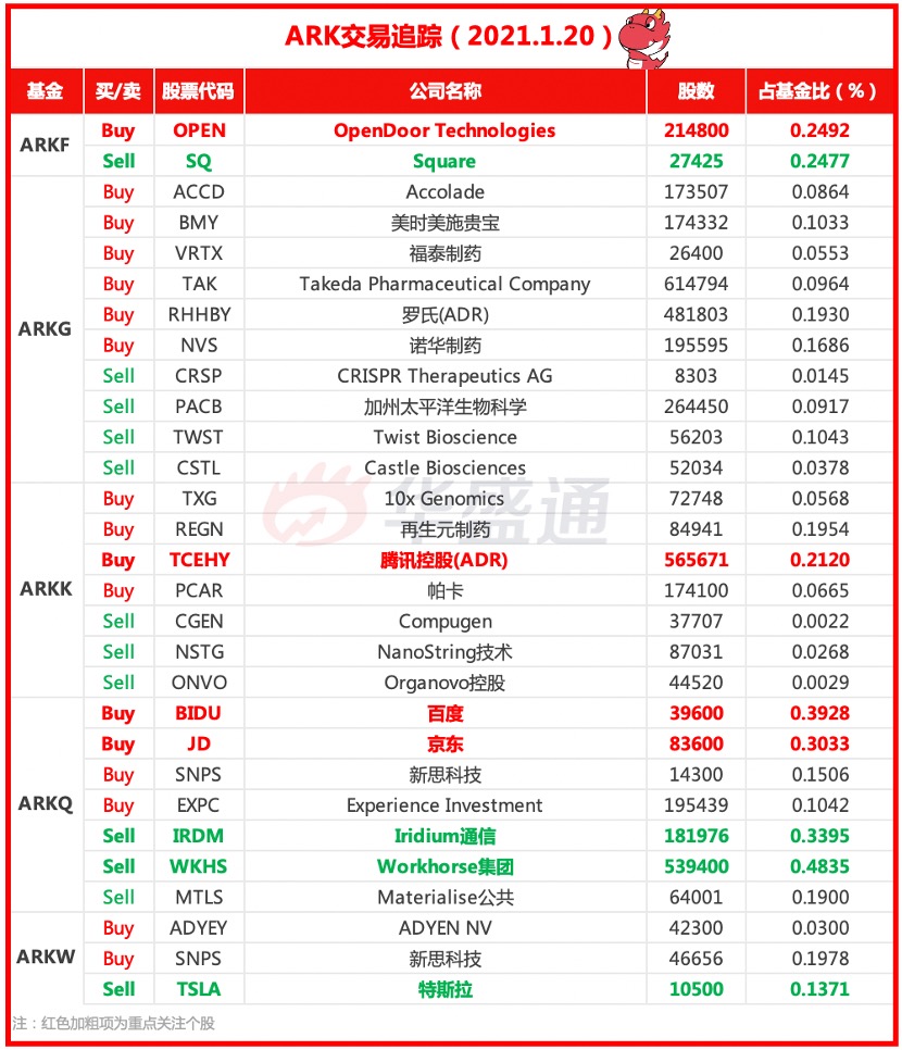 Ark周三重点交易有: