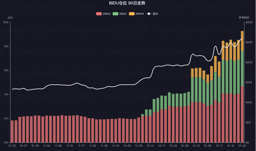 ARK旗下基金近日频繁增持百度,如下图所示: