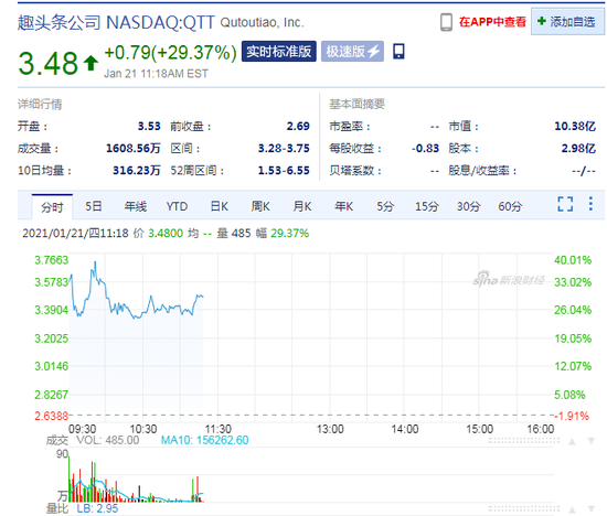 趣头条大涨近30%,报3.48美元。盘中最好涨38.1%。趣头条三个交易日累涨超70%