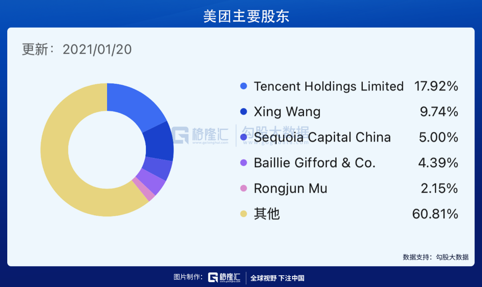 而除了拼多多,美团的崛起也对阿里有不小的影响。在美团的投资者中,也还是看到那个熟悉的身影:腾讯。