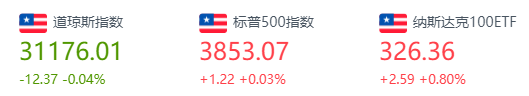 美股周四表现反覆,大市窄幅拉锯。截至收盘,道琼斯指数跌0.04%,报31176.01点;标普500指数涨0.02%,报3852.80点;纳斯达克综合指数涨0.55%,报13530.92点。