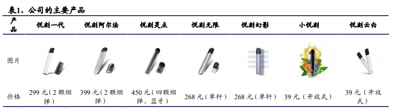 自成立以来,公司已经推出了悦刻一代、悦刻阿尔法、悦刻无限、悦刻灵点、悦刻幻影五个系列的封闭式可充电电子烟产品以及小悦刻、悦刻云白两款开放式电子烟产品。