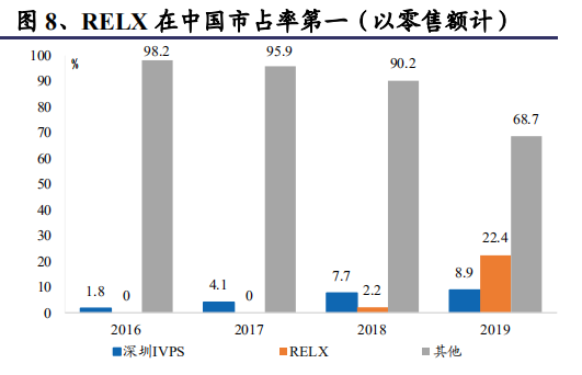 2019 年和截至 2020 年 9 月 30 日的 9 个月,按零售额计算,公司在封闭式电子雾化产品的市场份额分别为 48.0%和62.6%,RELX 是中国零售额最大的电子烟品牌。根据 CIC 于 2020 年 9 月进行的一项调查,Relx 在品牌知名度方面排名第一。