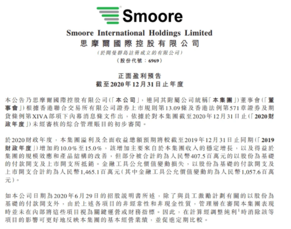思摩尔 2020 财政年度溢利及全面收益总额预期为 23.91亿元-25 亿元,将较 2019 财政年度增加约 10.0%至 15.0%。思摩尔2020Q4 溢利及全面收益总额预期为 12.72 亿元-13.81 亿元,同比增长175.58%-199.13%。