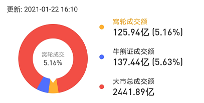 其中,窝轮总成交125.94亿港元,牛熊证总成交137.44亿港元。
