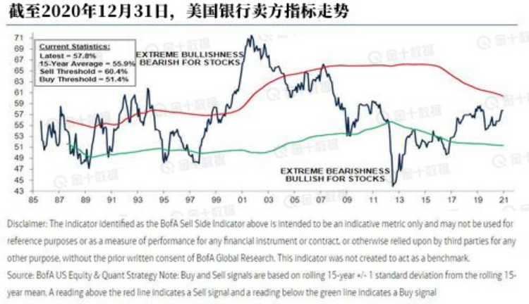 继花旗、高盛之后,美国银行也发出警告,表示美股市场的过度狂热可能引发一些风险。美国银行股票策略师Savita Subramanian在一份报告中表示,美国银行专有的卖方指标——一种衡量卖方情绪的反向指标,现在正处于金融危机以来最接近“卖出”门槛的水平。