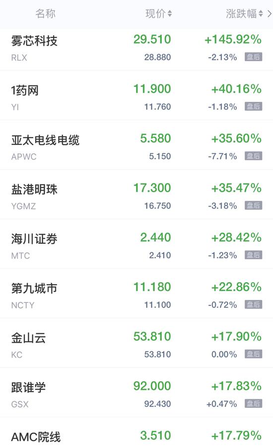 热门中概股周五收盘涨跌不一,中国最大电子烟制造商雾芯科技上市首日飙升近150%,金山云大涨近18%创纪录新高。
