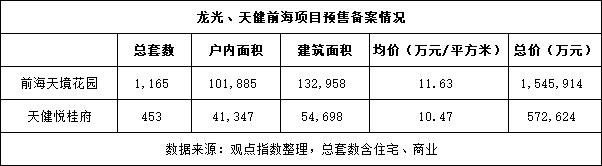 根据1月18日正式对外公布的预售备案信息,龙光前海天境、天健悦桂府两个项目共计推出房源1618套,含住宅1430套。