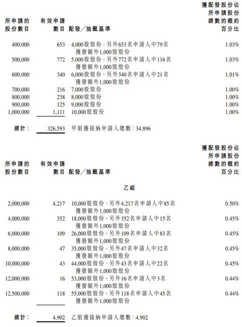 其中,香港公开发售合共接获331,495份有效申请,认购合共18,921,161,000股香港公开发售股份,相当于香港公开发售项下初步可供认购的香港公开发售股份总数2500万股约756.85倍。