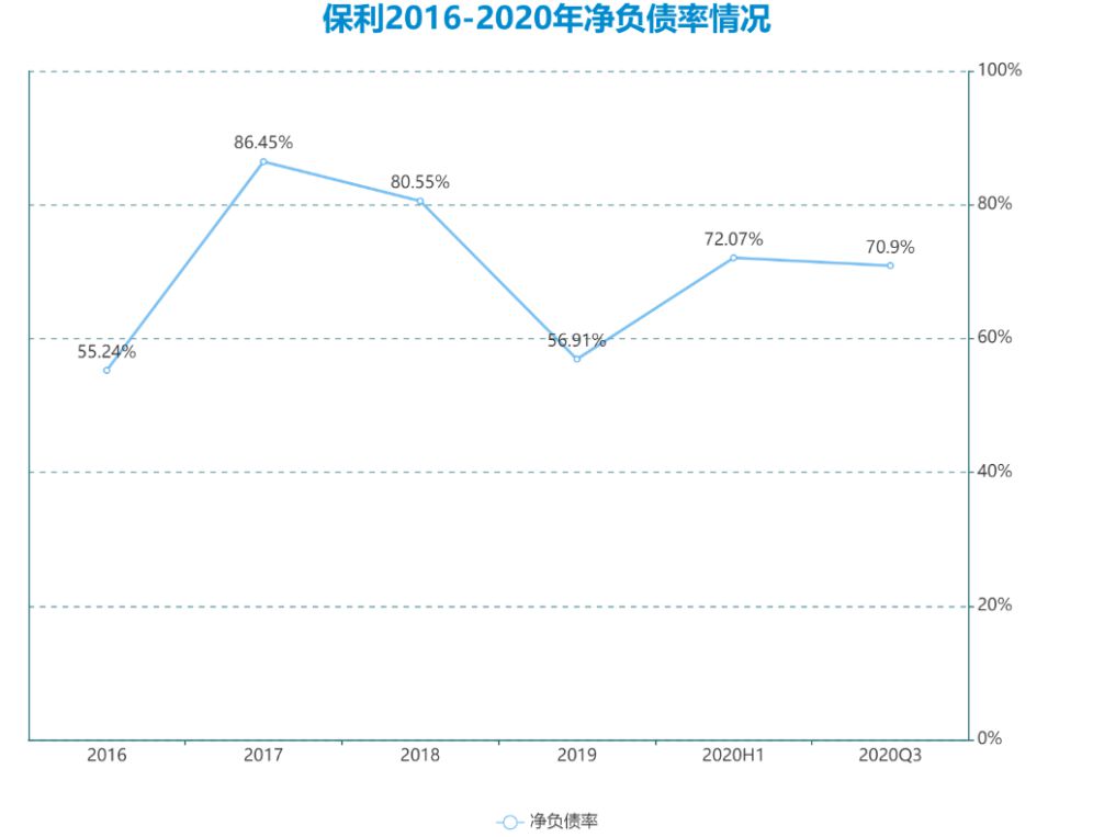 截至2020年底,保利永续债规模为221.8亿元,同比增幅41.45%;若算上永续债,截至前三季度保利净负债率约为86%,远超目前70.9%的水平。