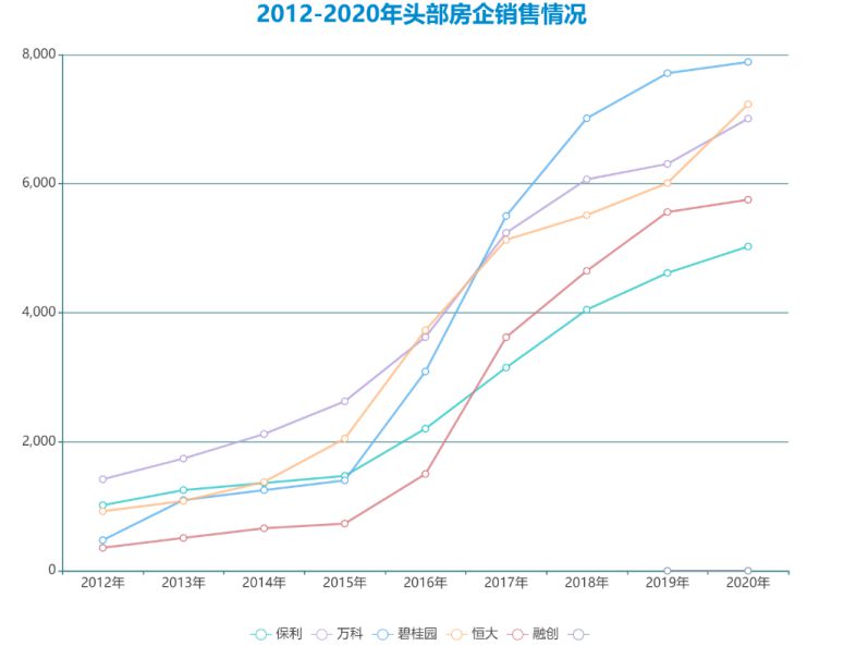 结合目前已披露业绩及观点指数榜单,2020年销售增幅从高到低分别为恒大、万科、保利、融创和碧桂园,具体数字分别为20.3%、13.5%、8.88%、3.42%和2.24%。
