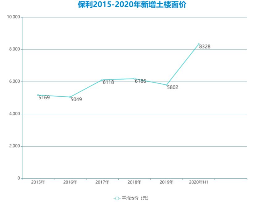 全年数据看,保利2020年新增项目楼面价为7388元/平米,相比半年报已有所下降,但整体而言比2019年仍有超27%的涨幅。