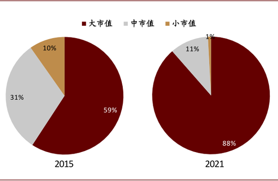 图表:港股必选消费板块大、中、小市值公司市值占比