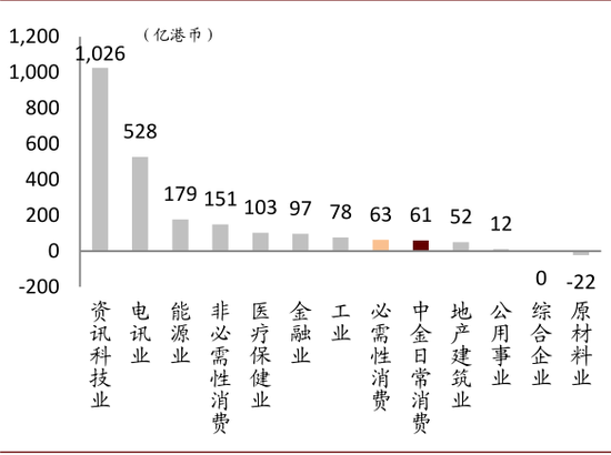 港股投资价值凸显,年初至今南下资金超两千亿港元。中金策略组从增长、估值、流动性、壮大的新经济板块四个方面阐述了2021年港股投资价值的内在逻辑。年初至今伴随港股的关注度持续升高,大陆投资者持续透过港股通投资港股优质资产,截至2021年1月22日,港股通净流入资金规模已达约2300亿元。根据我们测算,按港交所一级行业来看,本轮港股资金流入主要流向资讯科技业与电讯业,主要由于腾讯、阿里巴巴、美团、京东等新经济龙头市值集中,虹吸效应较明显。除上述两行业外,其他各行业年初至今亦有较多南下资金涌入,中金港股日常消费板块年初至今累计涌入约61亿港币。