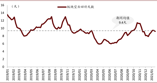 图表: 2019年1月至今中金港股日常消费板块空头回补天数