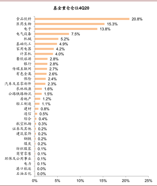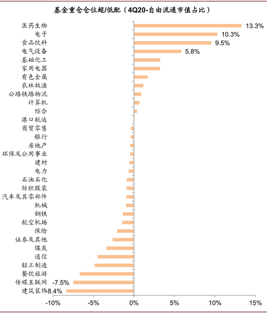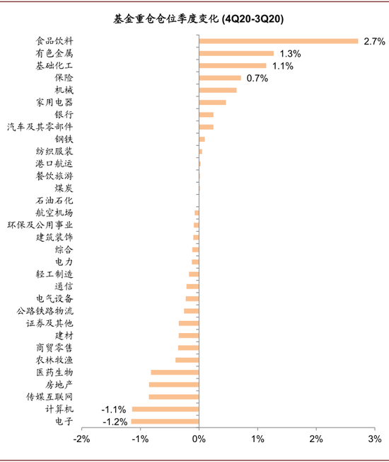 图表: 全部基金持股比例变化(4Q20 vs. 3Q20)