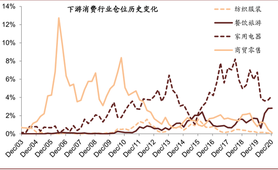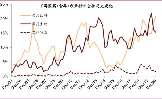 图表: 下游农业/医药/食品饮料行业基金仓位变化