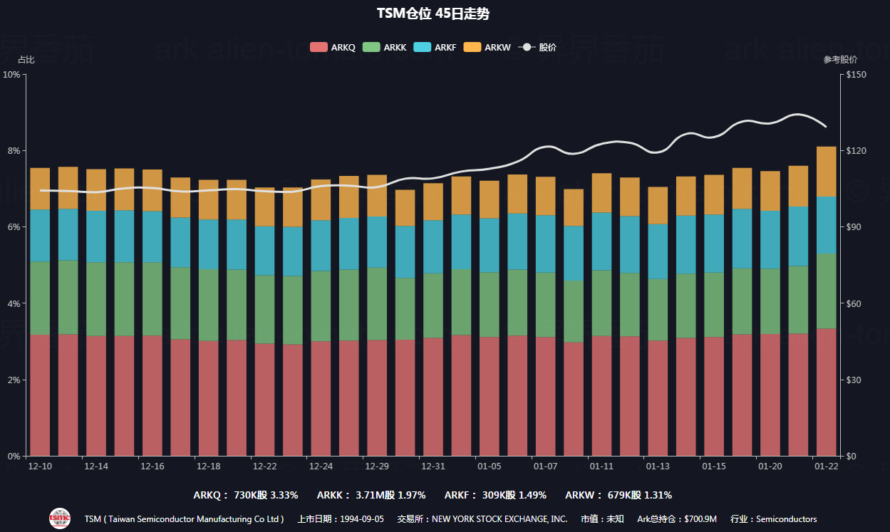 大买台积电!ARKK、ARKQ、ARKW共买入超76万股,斥资近1亿美元