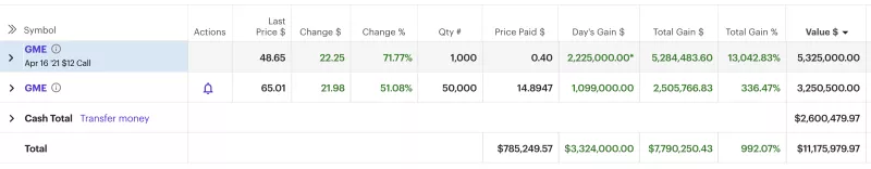 在这样一个严重缺乏理性的论坛里,Gamestop是其中最著名的股票之一。一位名叫DeepFxxingValue的网友在Gamestop的股价最低点买入了5万美元的看涨期权,17个月里变成了1117万美元,涨幅约210倍。