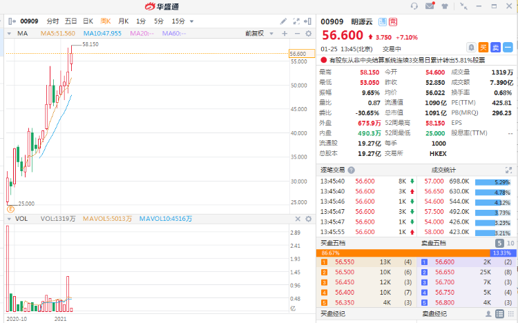 明源云(00909)发布公告,截至2020年12月31日止年度,集团预期将取得公司股东应占亏损介乎约人民币6.90亿元至约人民币7.50亿元,截至2019年12月31日止年度:公司股东应占利润约人民币2.16亿元。截至13时46分,涨7.1%,报56.6港元,成交额7.39亿。
