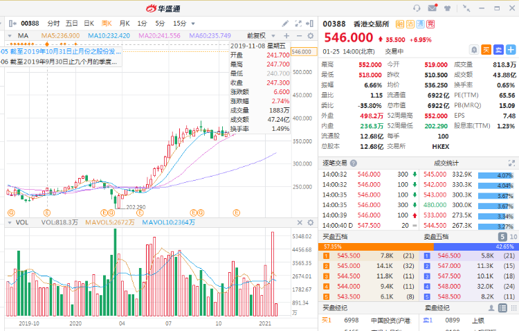 1月25日消息,南下资金抱团腾讯、美团、港交所等港股核心资产,港交所今日大涨超6%,市值逼近7000亿港元。港交所今年以来累计获得内资涌入90亿港元,而快手、百度、B站上市都成为了公司股价上涨的催化剂。