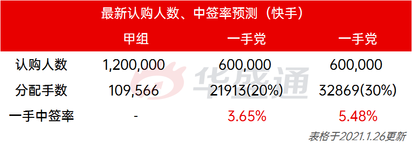 得出最新结论:快手一手中签率由原先的9%-14%,下降至3.7%-5.5%