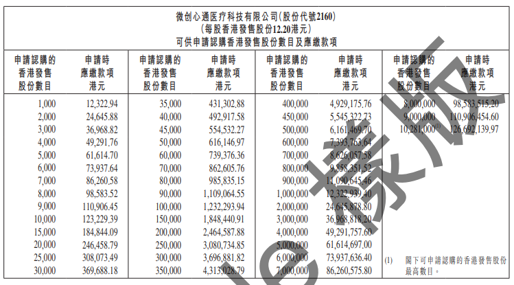 心通医疗-B(02160):招股价11.1-12.2港元,一手入场费约12200港元